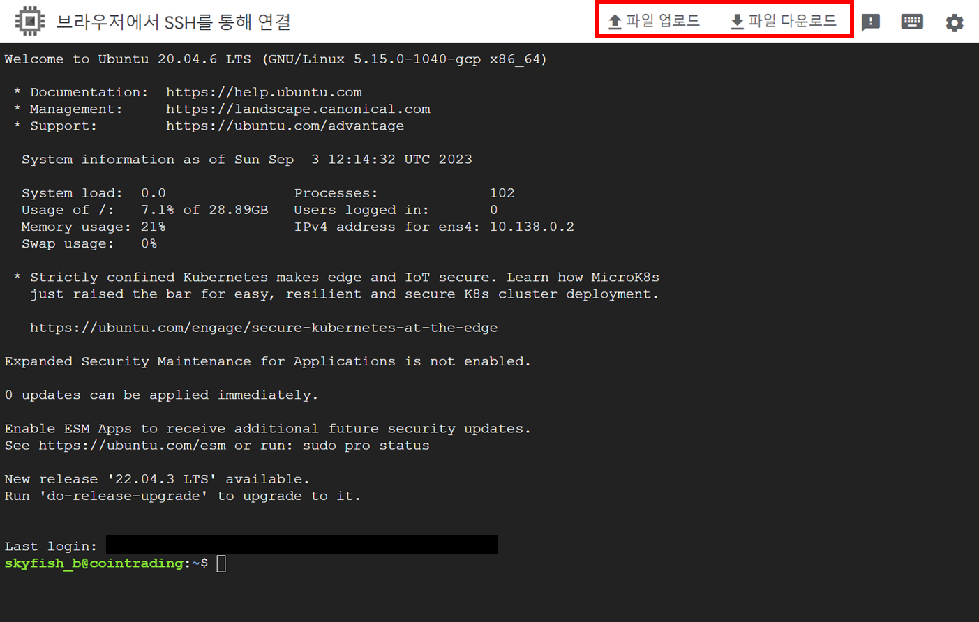 1) 간단하게 사용하는 방법: compute engine의 개별 VM 인스턴스에서 ssh 버튼 클릭