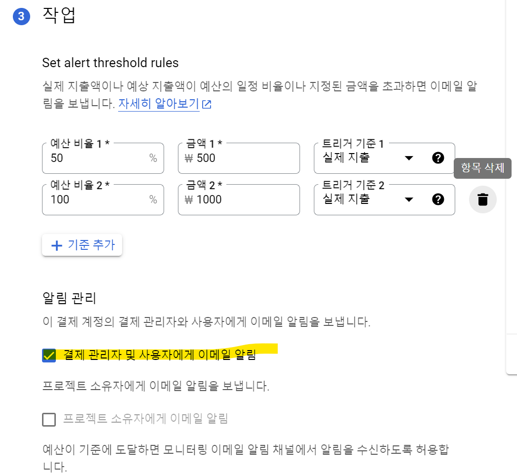 그것을 막기위해 예산을 설정하고 알림을 주는 기능이 있습니다. 그 기능을 설정해보겠습니다.