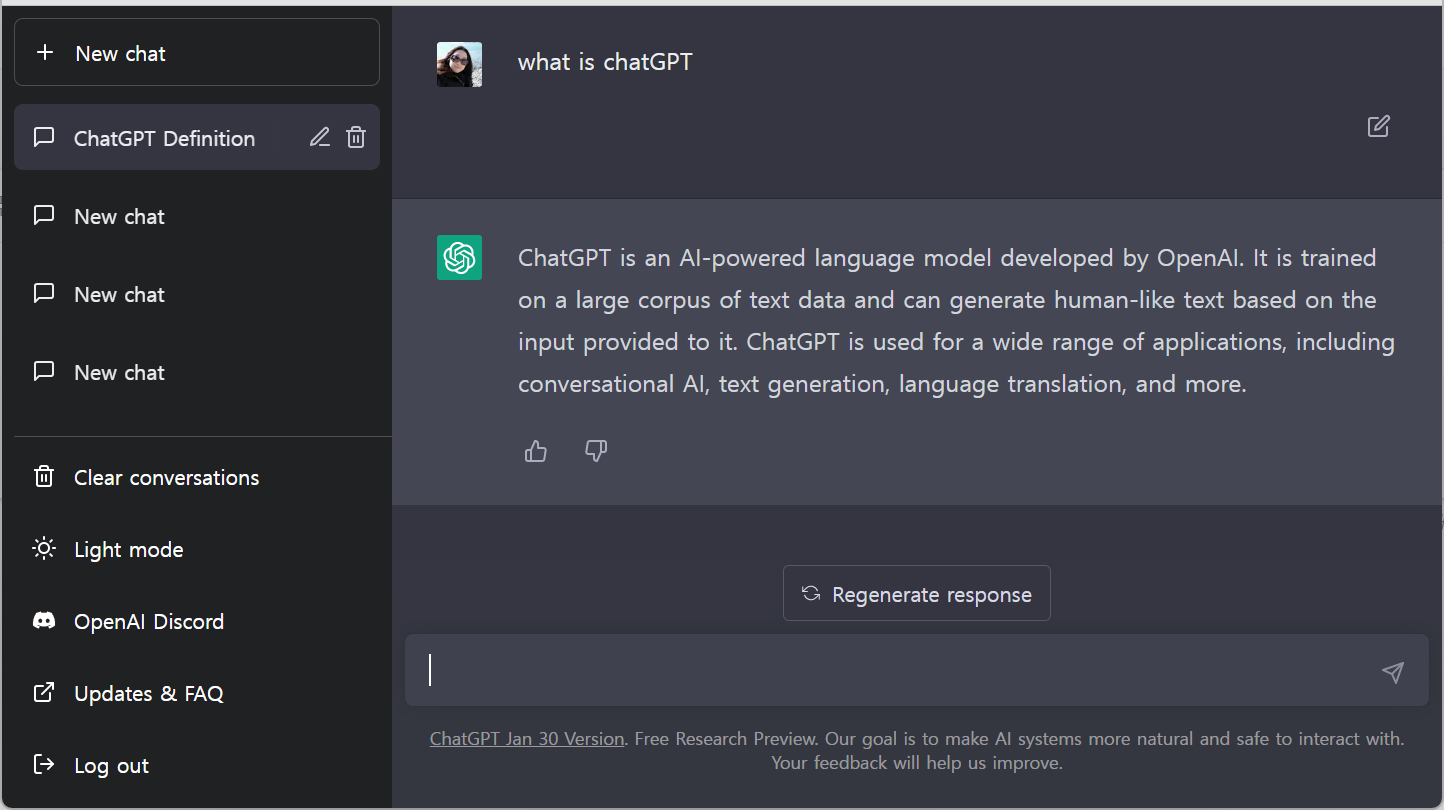Chat GPT의 결과가 맘에 안들면, Regenerate reponse 를 눌러서 새로운 답변을 받아봅시다.