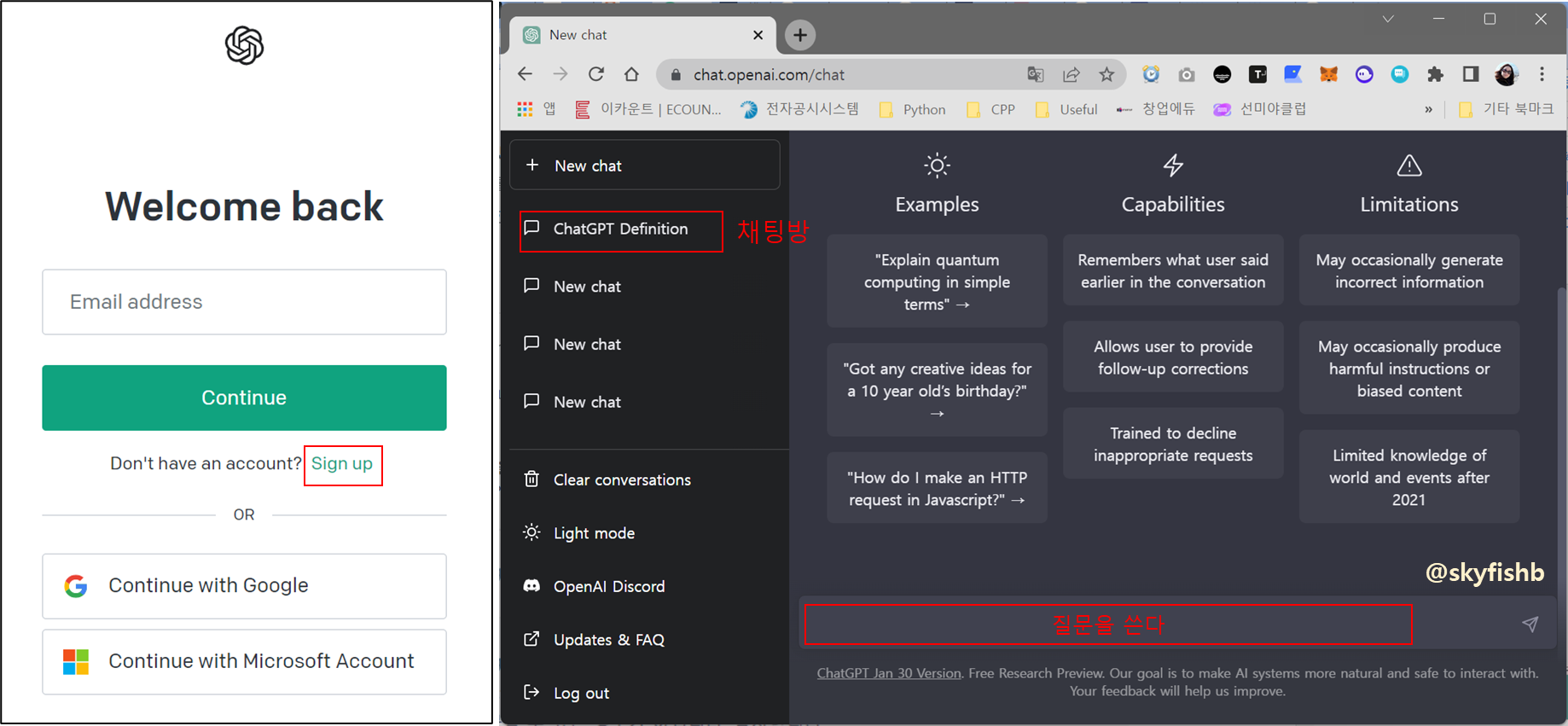 • Chat GPT 사이트 (https://chat.openai.com/) 에 접속한다.