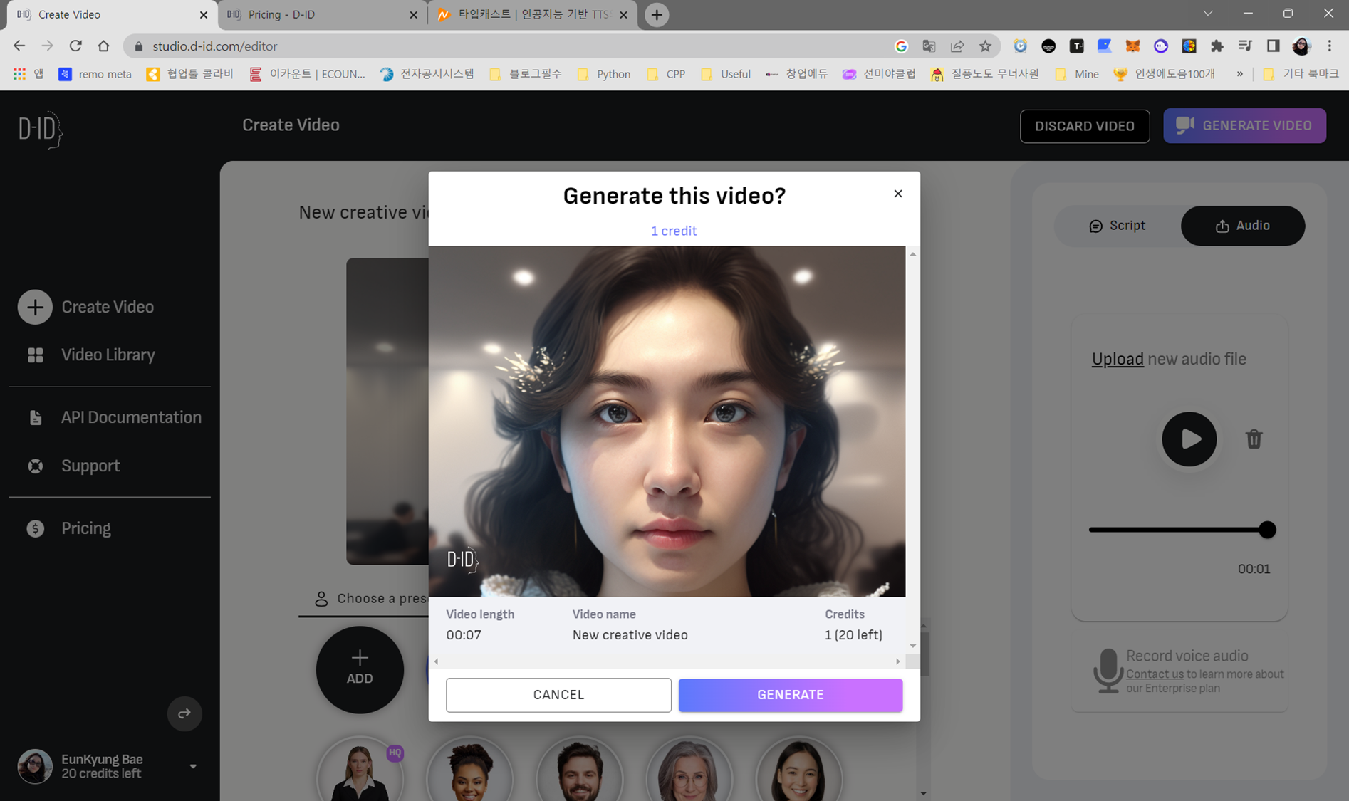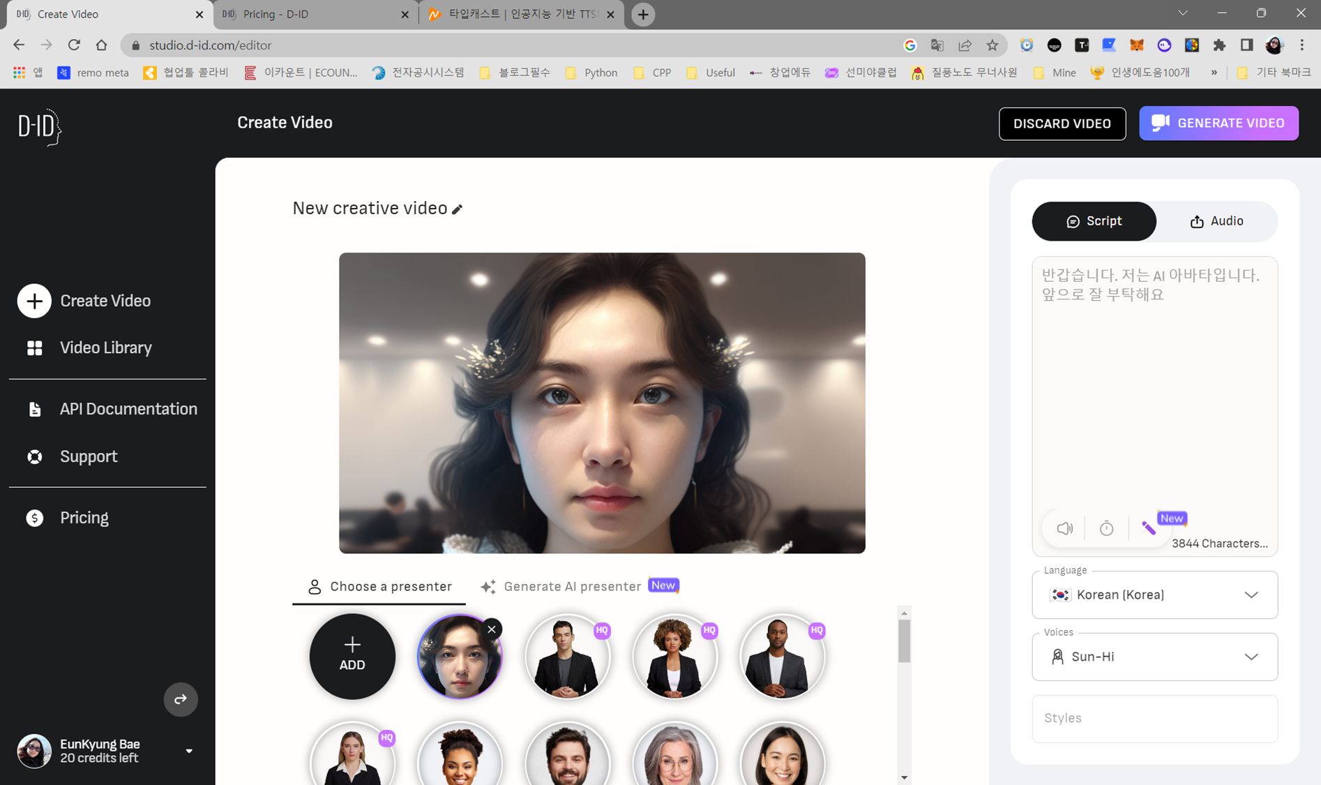 2. D-ID 사이트에서 말하는 가상인간 만들기