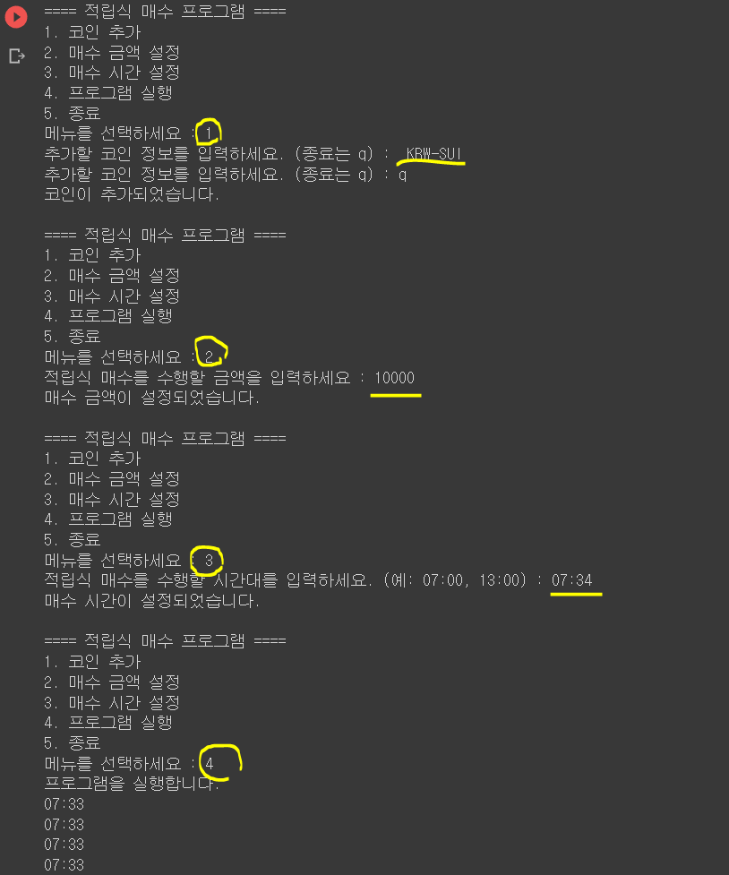 설정한 정보를 바탕으로 적립식 매수 프로그램을 실행합니다.