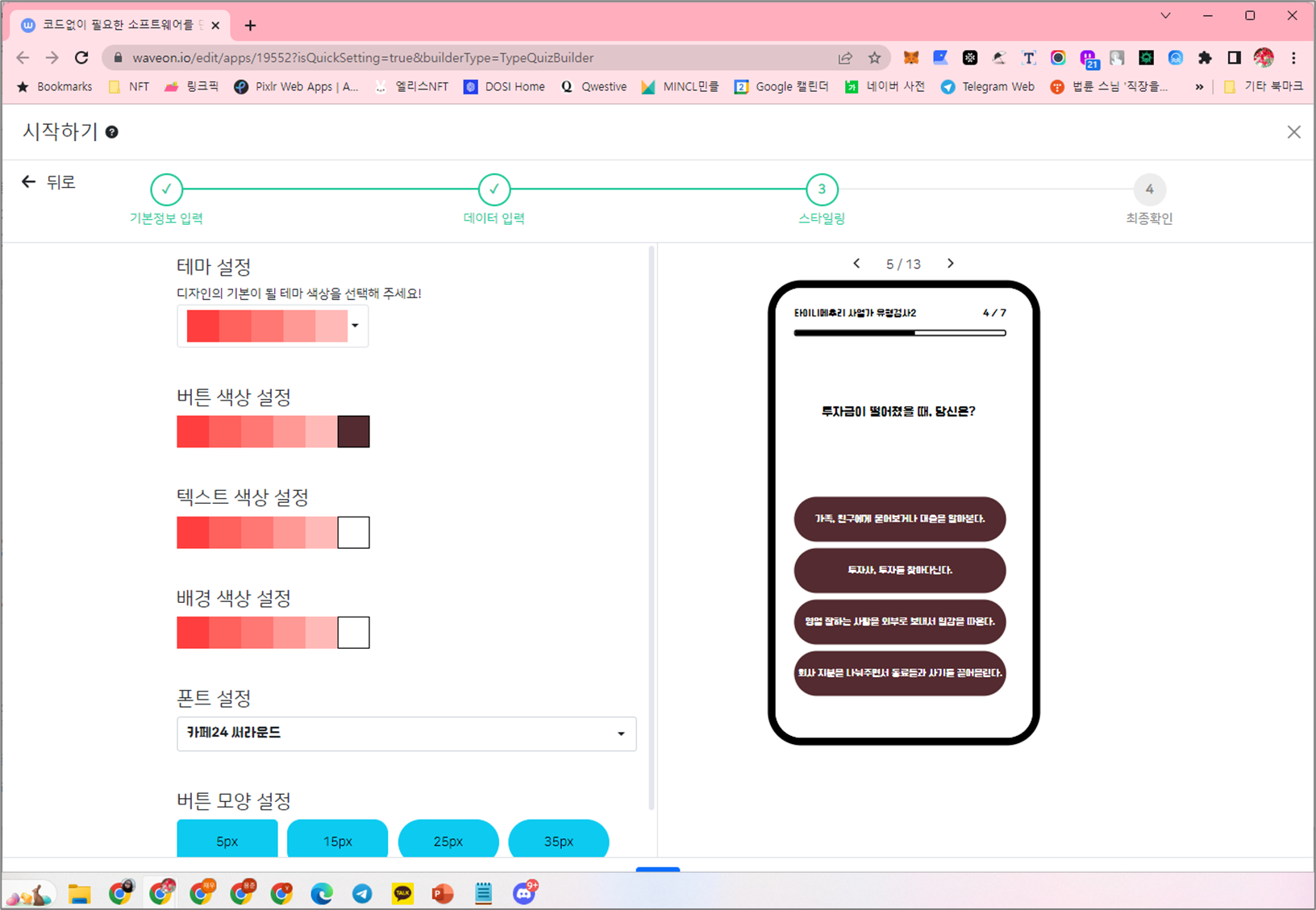 3) 스타일링: 색상 , 버튼색, 폰트 등 설정