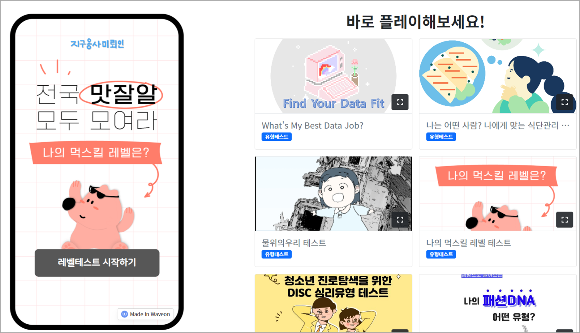 [No Code / webapp / 국내] 5분 만에 만드는 간단한 심리테스트, 웨이브온, waveon 에서!