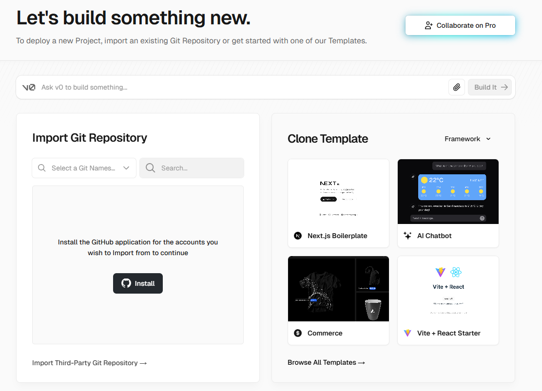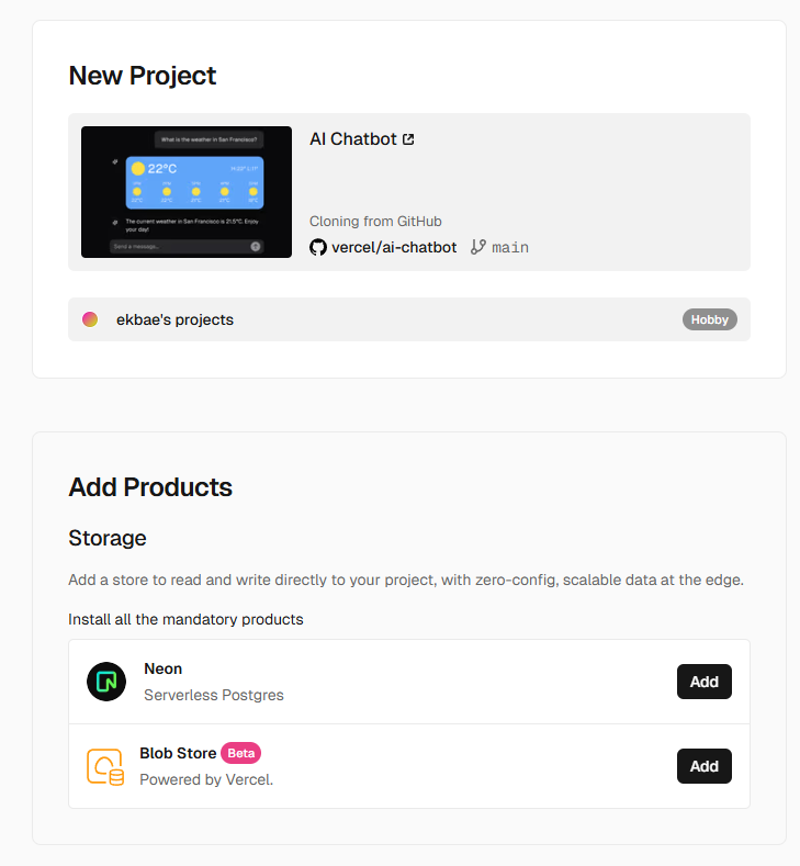 그리고 Vercel은 v0라는 Front UI - AI (React 기반)을 개발했는데 이걸 보니 백앤드 개발 기능도 기대되네요.