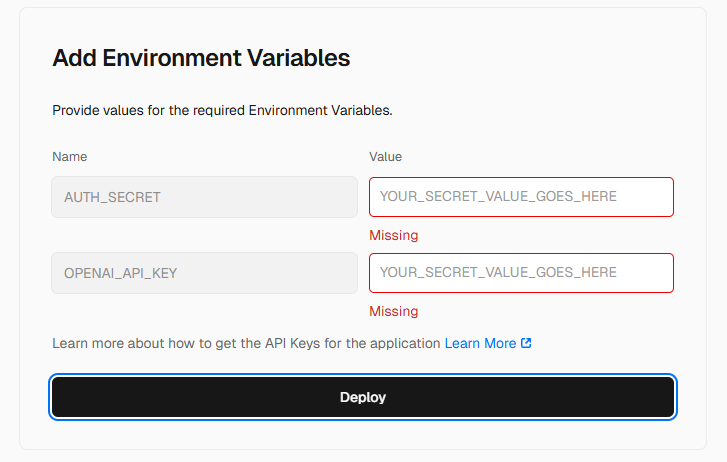 - 모든 설정을 완료한 후, 'Deploy' 버튼을 클릭하면 Vercel이 자동으로 빌드 및 배포를 진행합니다.