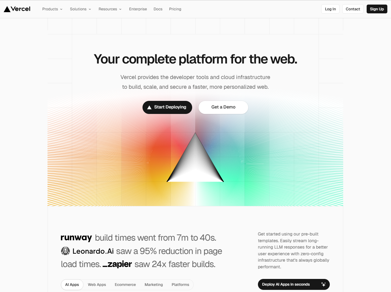 Vercel은 Next.js 개발팀이 만든 호스팅 플랫폼으로, 정적 사이트와 서버리스 기능을 위한 클라우드 서비스를 제공합니다. 개발자들은 복잡한 설정이나 관리 없이도 즉시 배포할 수 있으며, 자동으로 확장되어 웹 사이트 및 웹 서비스를 호스팅할 수 있습니다. 또한, GitHub, GitLab, Bitbucket 등의 저장소와 연동하여 코드 푸시 시 자동으로 배포할 수 있습니다.