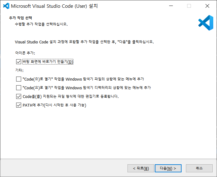 다운로드가 완료되면 설치파일을 실행하고 기본설정을 마치면 vscode가 설치됩니다.